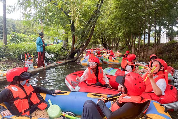 中午,大家圍坐在一起享用了美味的便餐,在輕松愉快的氛圍中交流著上午活動(dòng)的感受。短暫的休息后,下午的漂流活動(dòng)正式開啟,將此次團(tuán)建活動(dòng)推向了高潮。